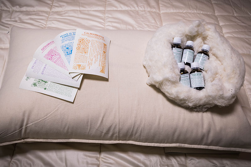 La linea dedicata comprende diverse tipologie di cuscini con Fiori di Bach e Fiori trentini biologici a seconda della individuale necessità pensata per sostenere le situazioni ricorrenti della vita.