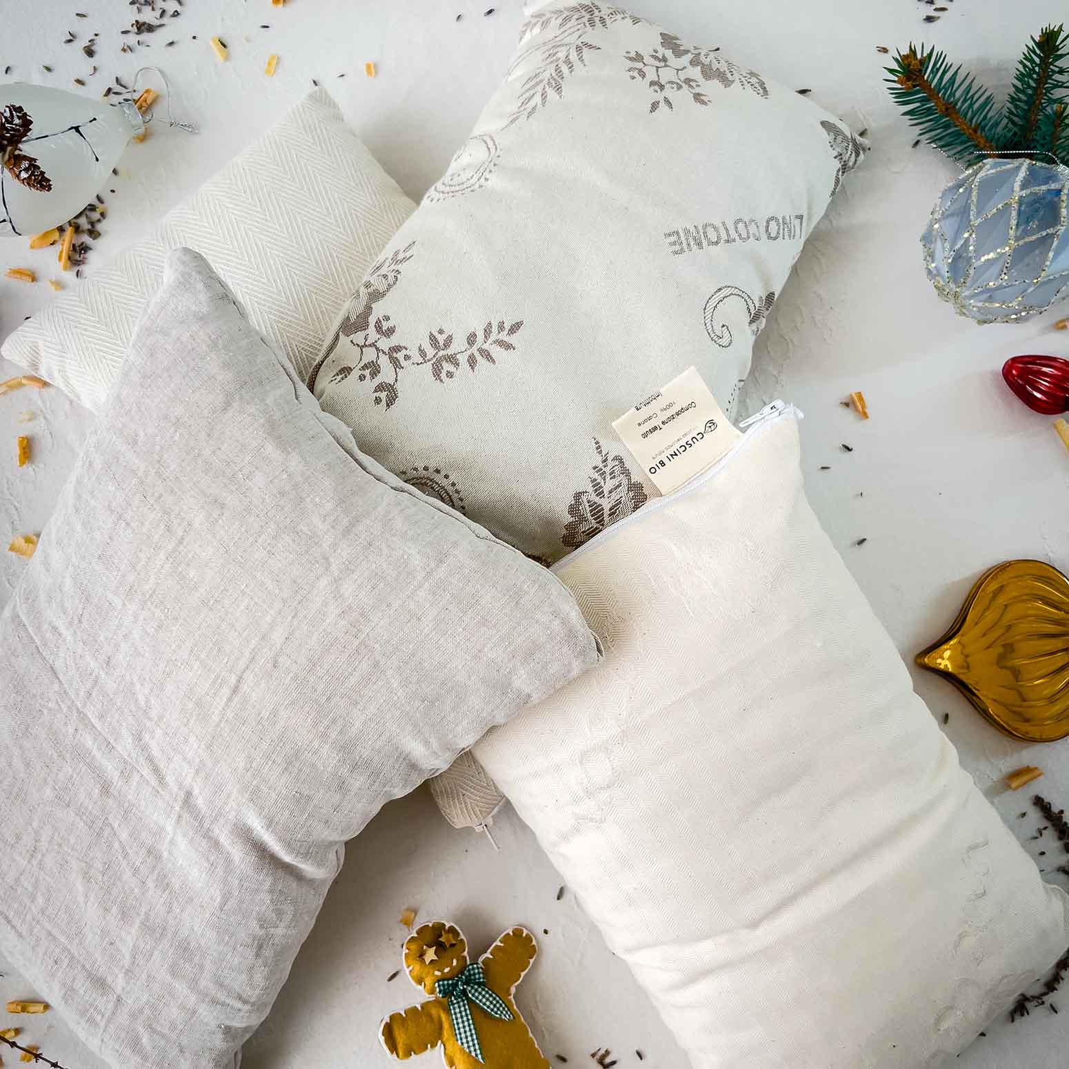 4 Mini Cuscini in cotone bio e lavanda bio – Christmas pack