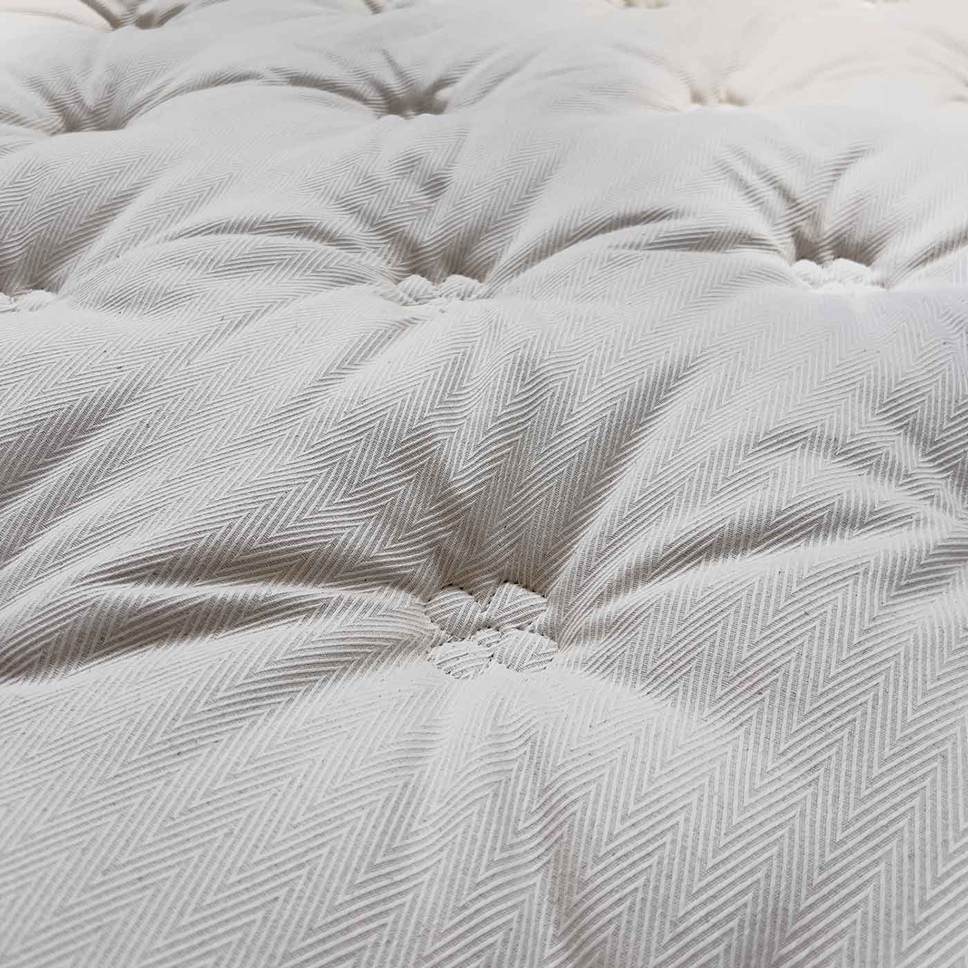 Il topper in canapa e cammello è una soluzione climatizzata, comoda per tutte le stagioni. Il lato in canapa è fresco e traspirante; il lato invernale composto da lana e cammello dona morbidezza confort, un micro clima ideale perché mantiene la temperatura corporea costante, né troppo caldo né fresco.